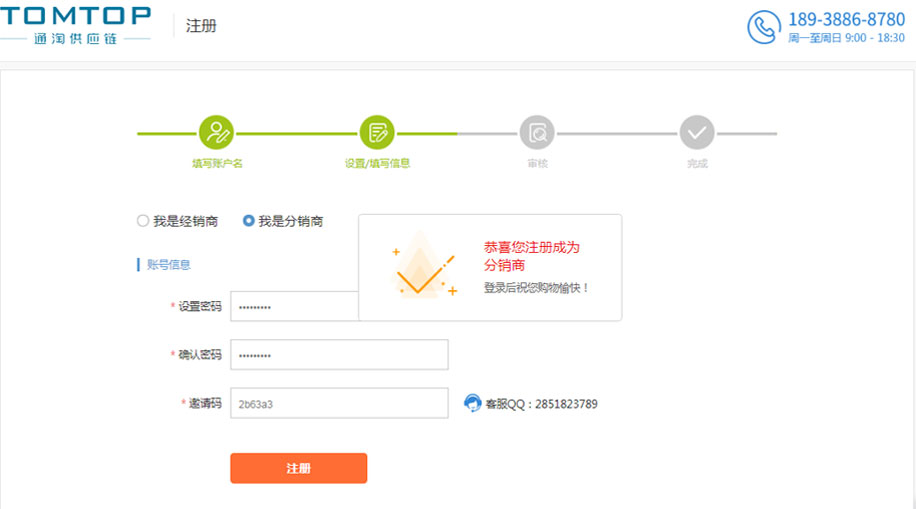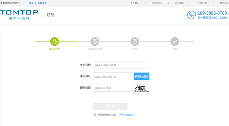 (4)勾选我同意通淘供应链《用户注册协议》